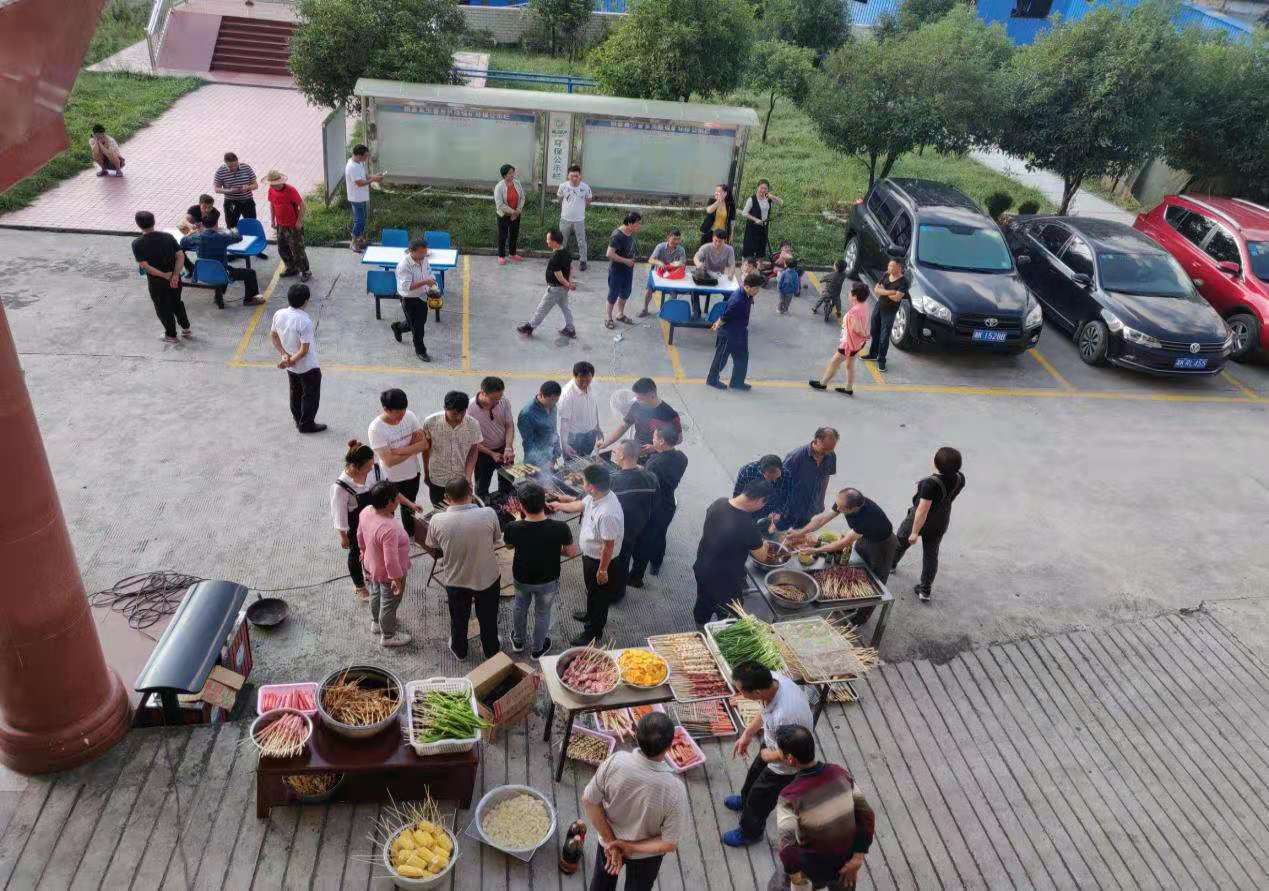 活動前,由礦領導組織員工(gōng)将菜品、烤架、桌子等物資搬運到行政辦公室前,一切準備就(jiù)緒,随後由扶黃山(shān)礦長親自(zì)點燃炭火(huǒ),标志着活動正式開始。