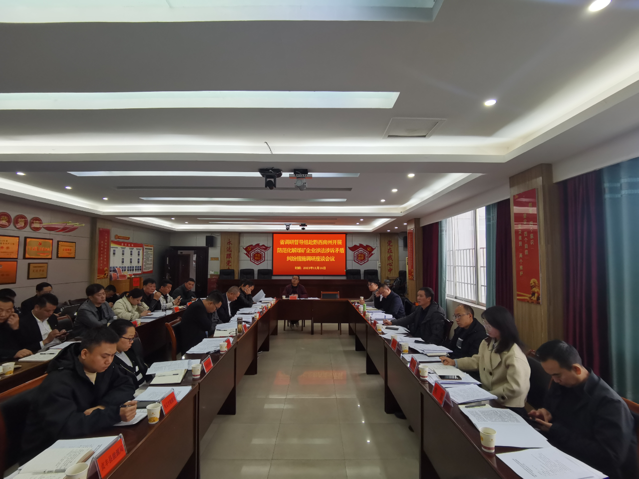 爲進一步鞏固涉法涉訴煤礦企業系統治理(lǐ)攻堅行動成效,督促指導市(州)持續深入推進涉煤案件(jiàn)清理(lǐ)處置,複盤分(fēn)析問題,總結經驗做法,收集措施建議。11月10日(rì)至16日(rì),省能源局聯合省委政法委、省法院、省自(zì)然資源廳分(fēn)赴安順市、遵義市、畢節市、六盤水市、黔西南(nán)州開展煤礦企業涉法涉訴系統治理(lǐ)攻堅行動督導暨防範化解矛盾糾紛若幹措施聯合調研。畢節市副市長謝志昌,安順市政府副秘書長齊維林,市(州)專班成員單位、縣(區)能源局相(xiàng)關負責人(rén)及煤礦企業代表參加座談。